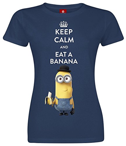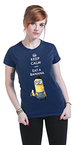 Keep Calm And Eat A Banana Minions T-Shirt für Frauen in navy aus 100% Baumwolle. Offiziell lizensiertes Produkt.
